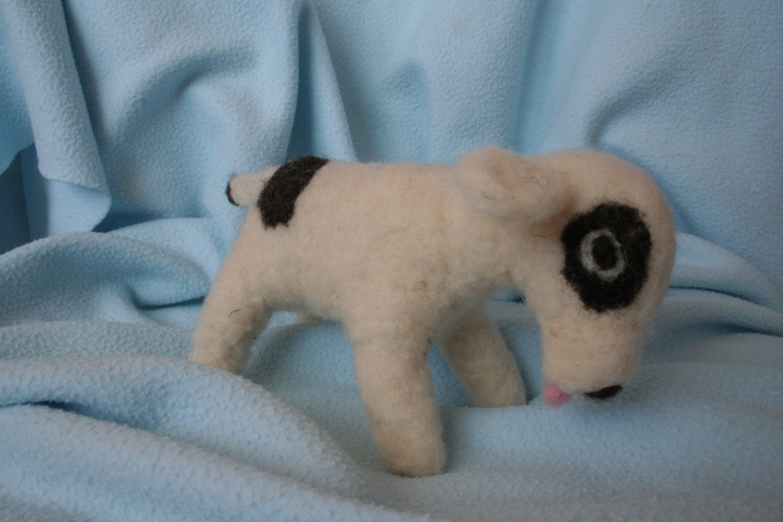 Plstěný pejsek z ovčího rouna.