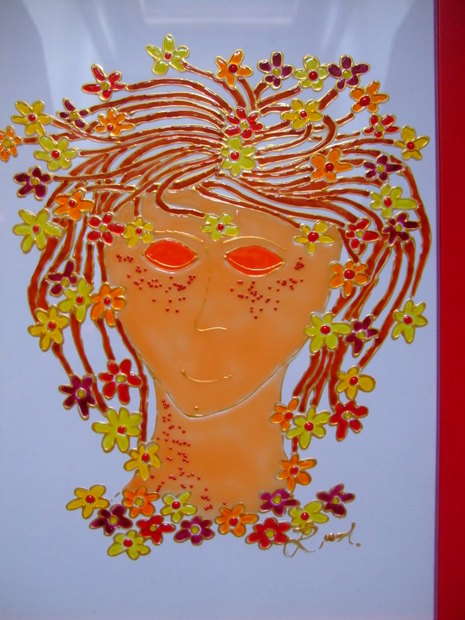 Místo vlasů květy, výhoda slupovacích barviček - jsou syté, plastické, lze je dozdobit drobnými