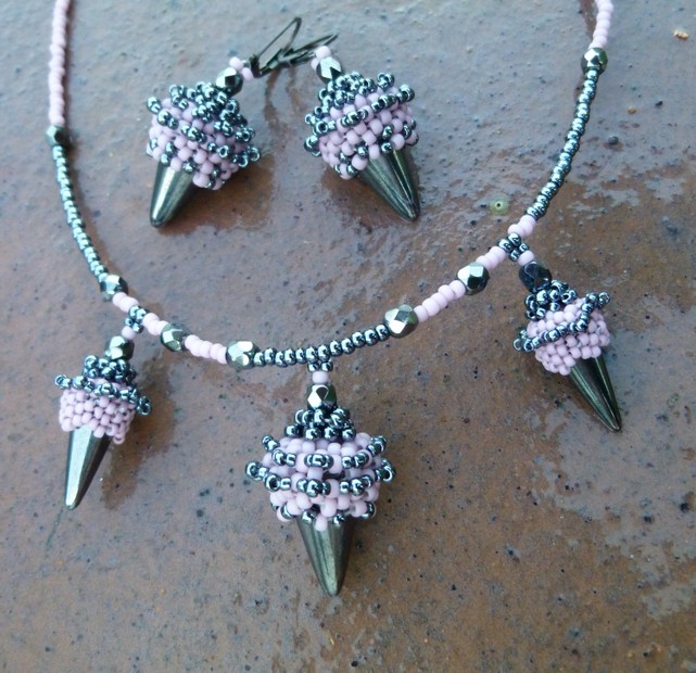 Ručně vyráběné mačkané korálky ve tvaru trnů (spajky), Toho round, ohňovky, lanko, zapínání, nymo