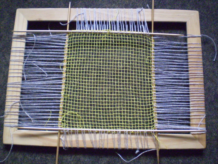 Usieťovaná sieť a natiahnutá do rámu. Pripravená na vyšívanie.