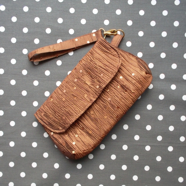 Zlatá společenská kabelka ušitá ze zlatého taftu s filtry podle Bellet design pro časopis Marina.