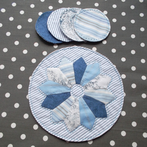 Prostírání, hlavní motiv drážďanského talíře. Ruční prošití. Ušito dle Bellet design pro časopis Marina.