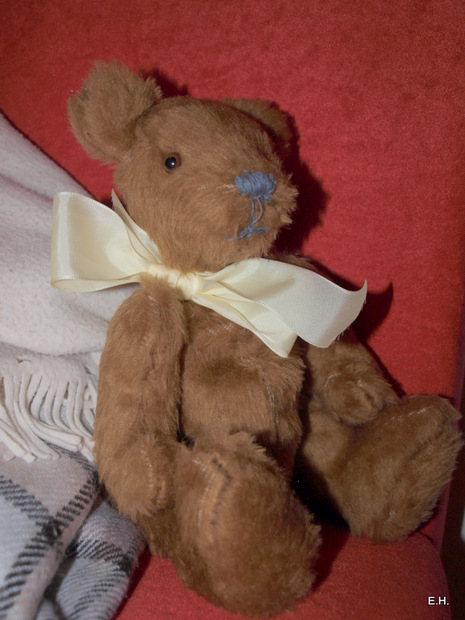 Po peti hodinach usilovné práce se zrodil muj první,opravdu ručně šitý medvídek:-)Jmenuje se Lukášek po mém synovi:-)