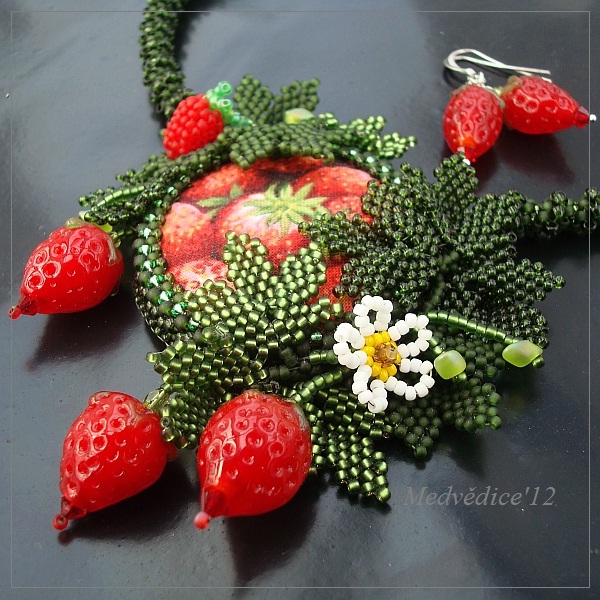 šitý jahodový náhrdelník s vinutkami od sanstyle