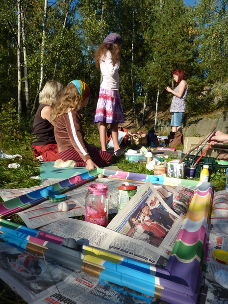 Na Přílepské skále jsme se sešli 4 holky a pár dětí, abychom společnými silami namalovaly rám, který se ve finále vydražil na aukci na pomoc Domovu Ráček z Rakovníka.