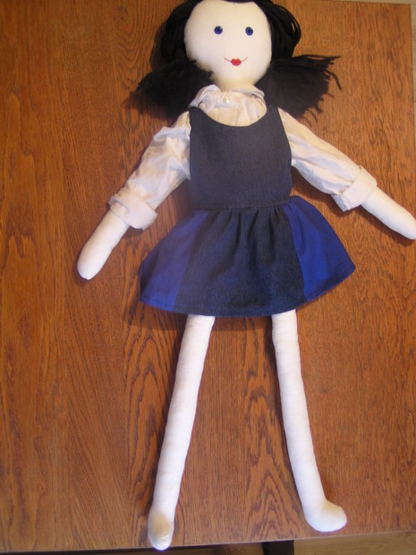 Hadrová panenka o výšce 85 cm, ručně šitá, vycpaná polyestarovým rounem. 380 kč