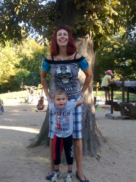 Jitka v RARA DIY triku a její syn v RARA pirátských legínach