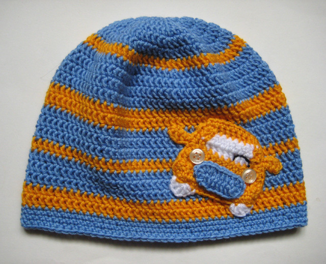 Zimní modrá čepice s oranžovým autíčkem