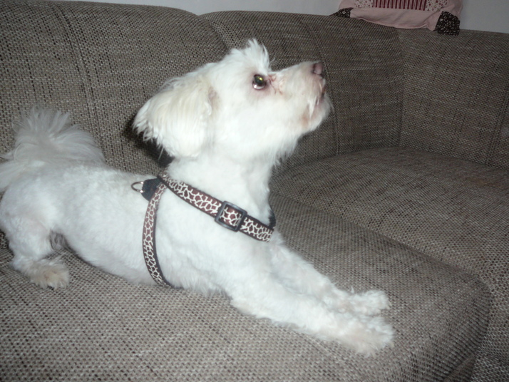 Honza si nechal pro svého Chica vyrobit postroj na míru. Mimo něj má do sady také vodítko a obojek ve stejném desingu.