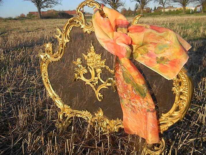 Nová malba na hedvábí - šála s rostlinným motivem a zlacením.