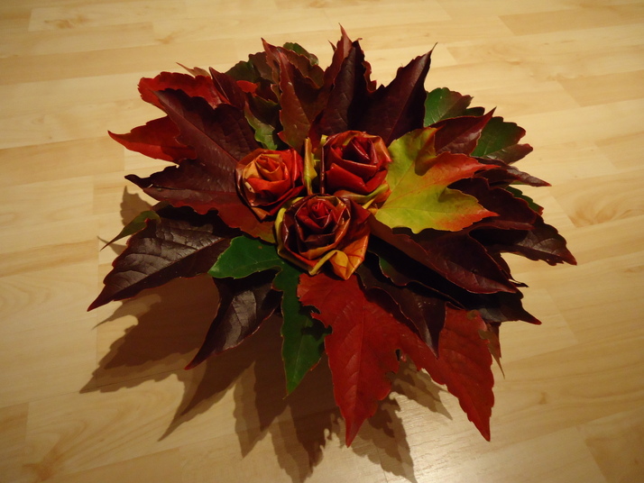 z listí vytvořené růžičky, insiprace z říjnové PŽ :)