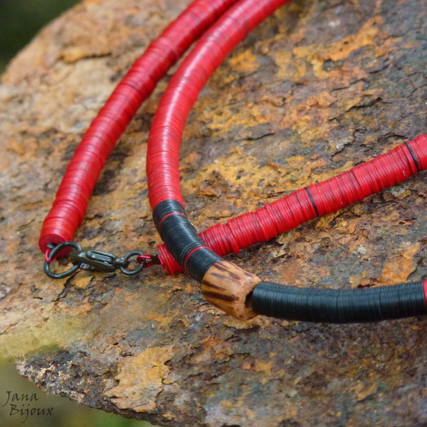STŘEDNĚ DLOUHÝ NÁHRDELNÍK Z RECYKLOVANÝCH AFRICKÝCH ELPÉČEK. KRÁSNÝ KUS, ELEGANTNÍ, LEHOUČKÝ, ENTO ZE ZAKONČENÍM V ČERNÉM ZINKU.