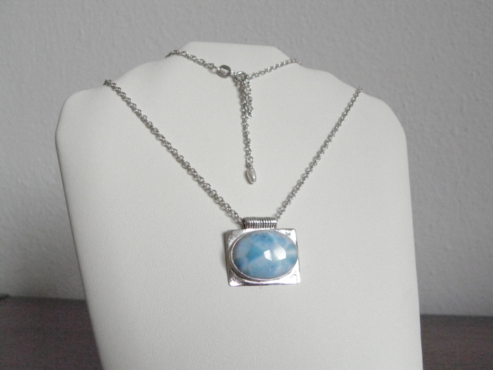 Zakázkový náhrdelník z oválného larimaru a stříbra.