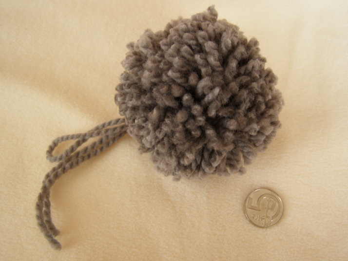 tahle bambule je velikosti 8cm v průměru, maximálně se lze dostat na 10 cm... velikost bambule závisí na síle příze a na mohutnosti obmotání
