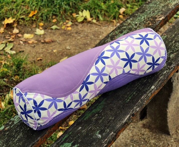 Válcový polštářek, šitý metodou křivek, vhodný zejména k televizi či čtení, aby hezky podepřel hlavu:) Ušito dle Bellet design.
