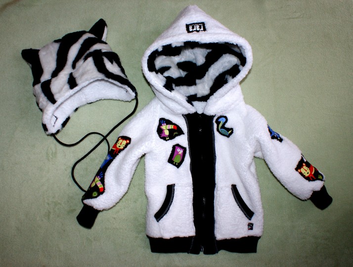RARA bílá medvídkova mikina se zebří čepičkou