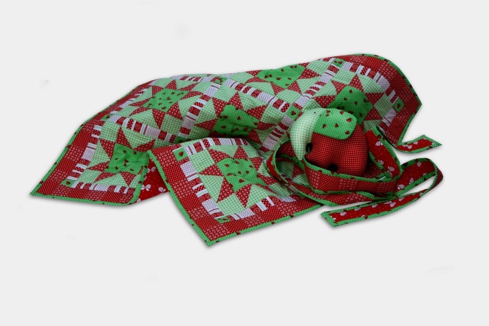 Červeno-zelená dětská zavinovačka/dečka šitá technikou patchwork pro malou Klárku