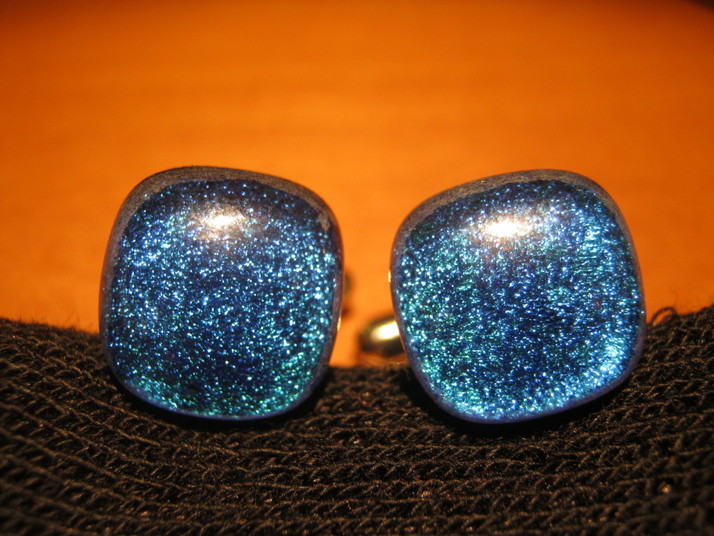 Skleněné manžetové knoflíčky z dichroického skla, barva tmavě modrá.