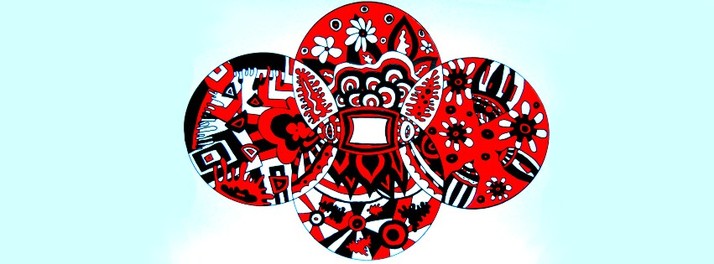 Moje vlastní kresba Života, tedy země, oheň, voda a vzduch.