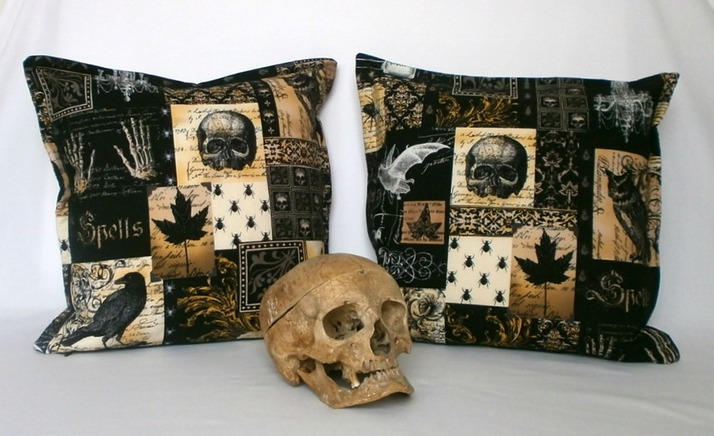 Také máte doma horrrrorového fandu (nebo spíše fanatika)? Pokud ano, pojďte se bát s ním a aby to bylo dostatečně stylové, ušila jsem k tomuto účelu prííííma pohodlné polštářky z fantastické kolekce NEVERMORE od Mich.Millera samozřejmě od Melluziny.