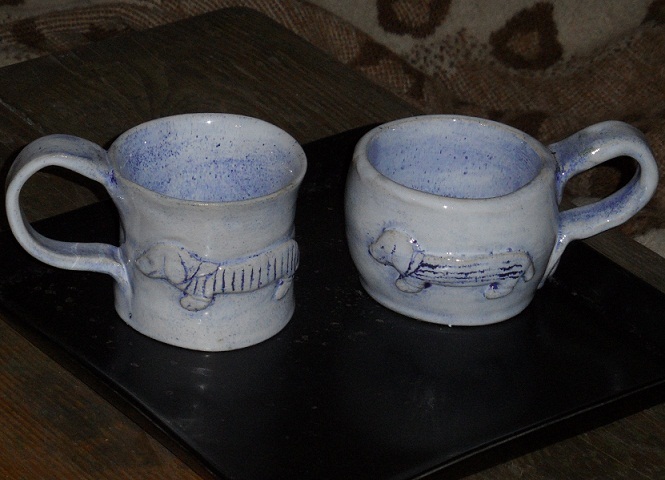 Tady nejen že mi barevně nevyšel zamýšlený dekor, ale ani se z těchto hrnečků nedá moc dobře pít. Tak budu pro ně muset vymyslet nějaký jiný účel:-).