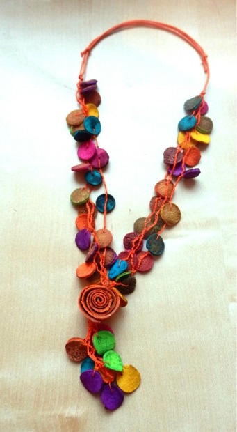 Potrebovala vysušit pomerančová kura a barvit s prirodni anilinou, pak se hačkuje s nite a bude dokonale a vonave nahrdelnik :)