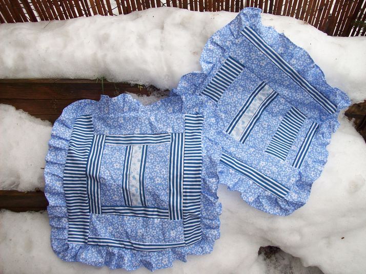Modrobílé polštářky, 100% bavlna, trochu retro romantické, velikost 40x40.