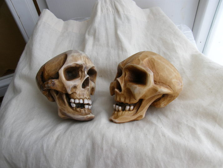 Rozchechtané lebičky jsou vyřezány z lipového dřeva, namořeny, voskovány, a domalovány olejovými a Humbrol barvami...