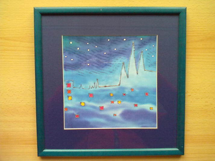malba na hedvábí, dřevěný rámeček, sklo, 30x30