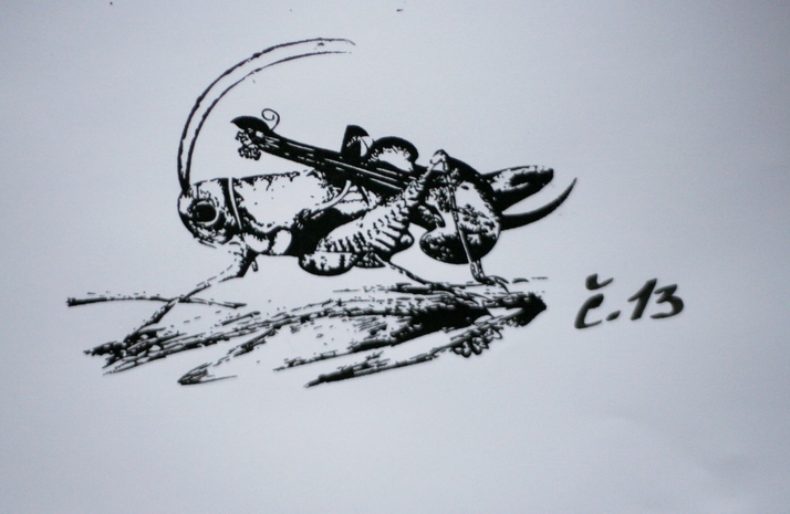 cvrček, housle, sítotisk, šablony