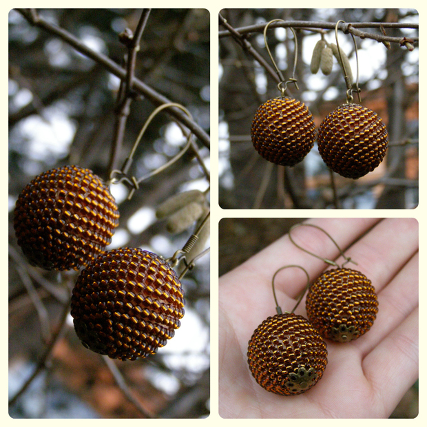 Surový dřevěný korál obšívaný japonským rokailem TOHO.