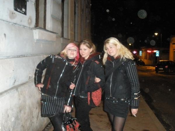Holky mají na sobě RARA zimní bundy a sukýnky a je tam i RARA zebří červená kabelka