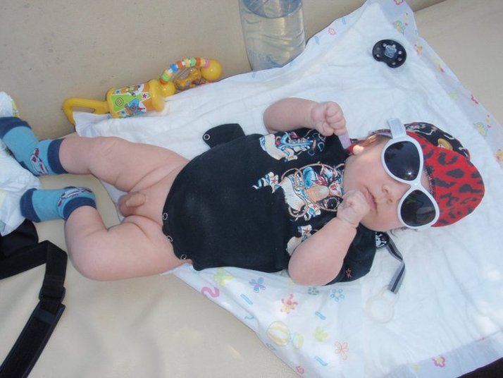 Šimonek (cca 2-3 měsíce) v RARA pirátském šátku s kšiltem
