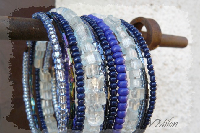 Paměťové náramky nosím nejraději. Je to šperk, který si můžete vždycky vyrobit tak aby barevně ladil k oblečení. A to je případ i tohoto kousku. Je vyrobený k letním šatům, které mají několik odstínů modré na bílém základě.