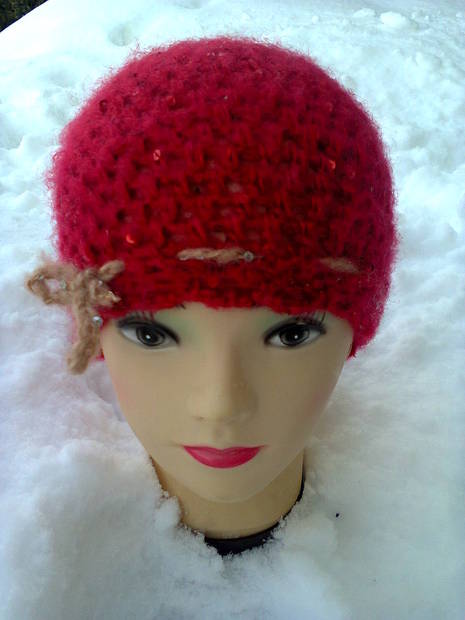Detska cepice (zima) v barve cervene s flitry ani na obrazku nevypada tak skvele.Flitry dodavaji cepici krasny lesk.