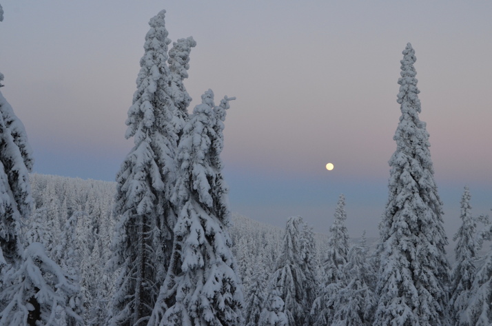 Zimní Jeseníky - vycházející měsíc