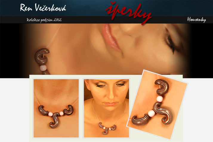Náhrdelník s korálky z leštěného a lakovaného fima, návlekový materiál barevná lanka délka 45 cm.