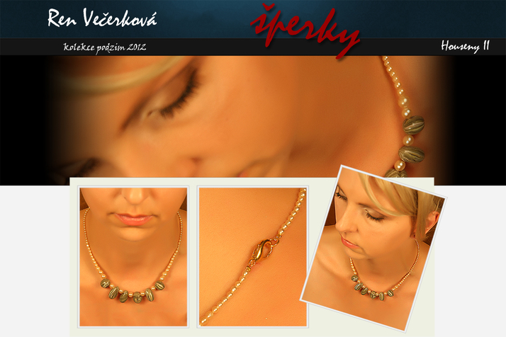 Náhrdelník z korálků z leštěných a lakovaných ručně modelovaných korálků z fima s bižu kompenenty délky 43 cm.