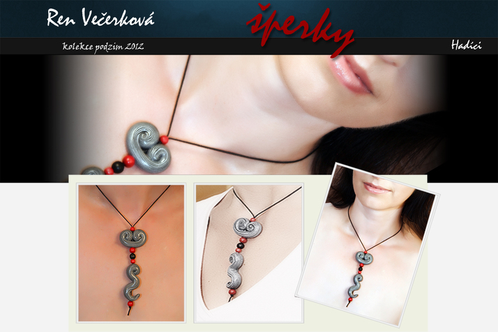 Leštěné a lakované fimo, návlekový materiál voskovaná šňůrka délky 38 cm, délka závěsu 10 cm.
