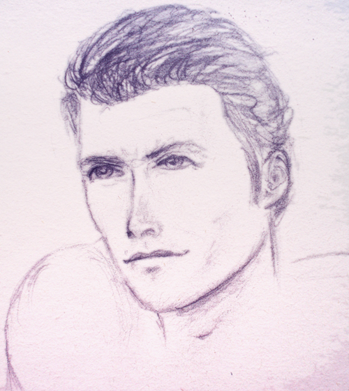 Clint Eastwood podruhé. Tohle je moje oblíbená fotka, připomíná tu víc sám sebe :D a také kresba se mi lépe vydařila.