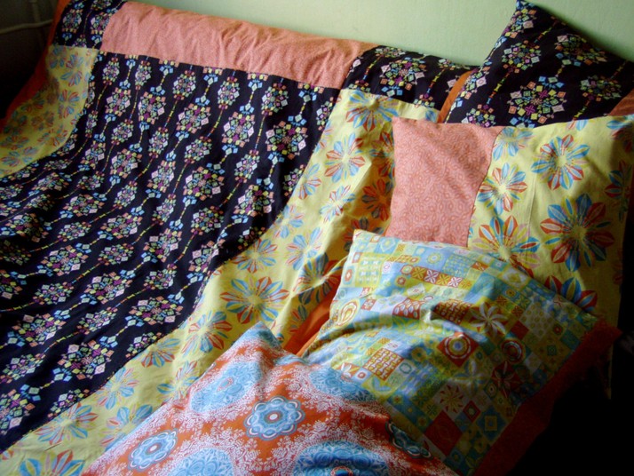 Deka a polštáře vznikly z látek kolekce Power Pop, které jsem nakoupila v obchůdku U Melluzínky.