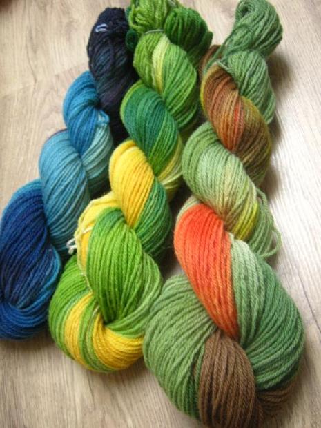 skladem modré a zelenožluté přadeno