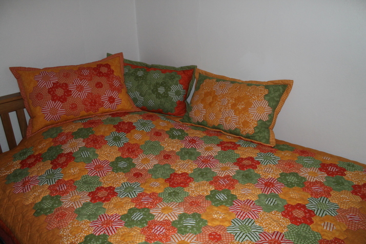 Konečně jsem stvořila něco pro sebe.Přehoz je ušitý z 90 procent ručně.Šila jsem necelé dva roky(samozřejmě s přestávkama,hlavně večer u televize).