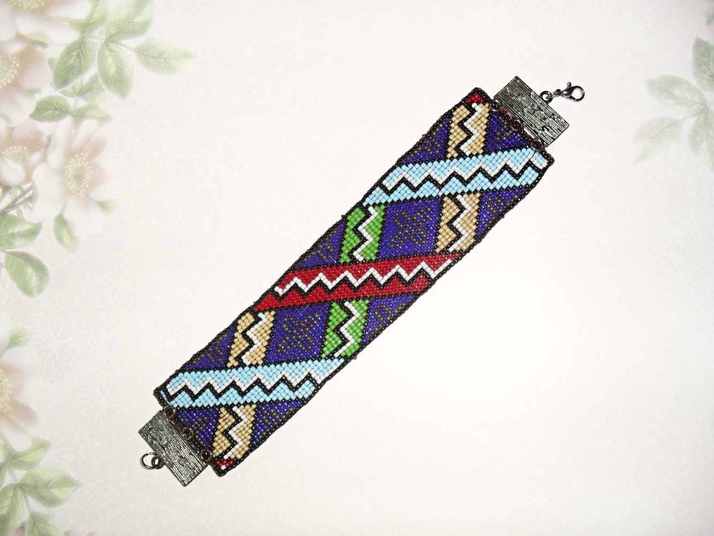 Náramek tkaný na stávku z japonských korálků, bižuterní zapíníní