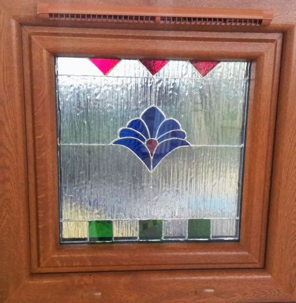 Vitráž byla vyrobena jako střední výplň dvojskla a vzniklo tak nově trojsklo se stejnou původní sílou výplně. Výměna za původní výplň pak zabere pouze pár minut.