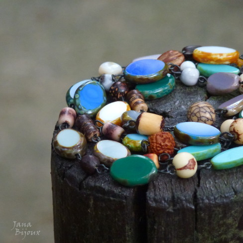 Baví mě tento kontrast mezi hladkým, geometrickým a dokonale symetrickým sklem a organickými tvary semínek a dřeva, snad bude bavit i Vás…