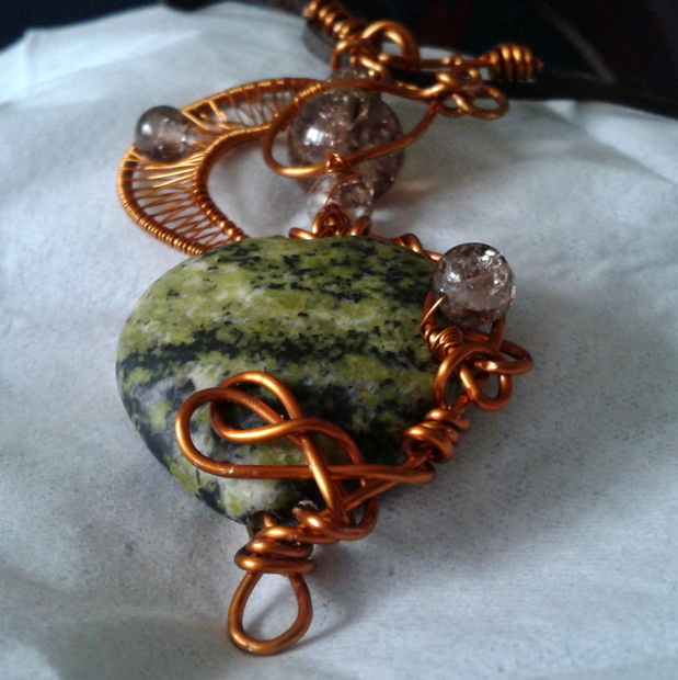 Srdce ze serpentinitu od Martapa-materiál v mědi doplněné práskačkami