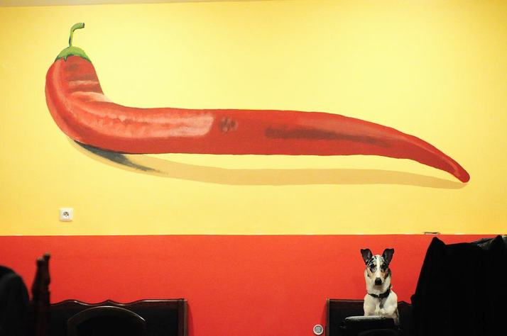 Nástěnná malba v cafe baru Chilli. Použity akrylové barvy.