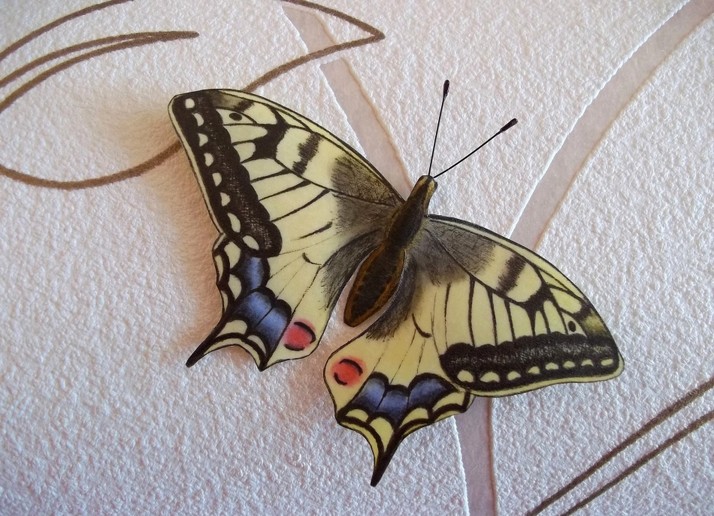 Skutečný motýl se prý (od prasknutí kukly až k úplnému uschnutí křídel) líhne asi dvě hodiny. Tomu mému, z pergamenového papíru, to trvalo možná i déle ;)