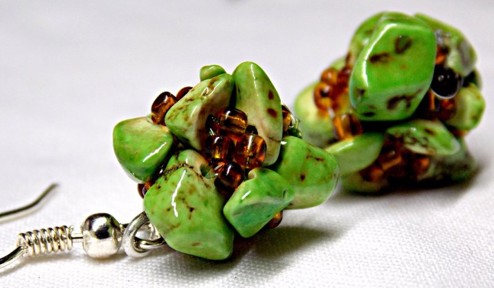 Šité náušničky o průměru cca 1 cm. Svým nepravidelným tvarem, díky různým velikostem úlomků, jsou netradiční a zaujmou na první pohled.